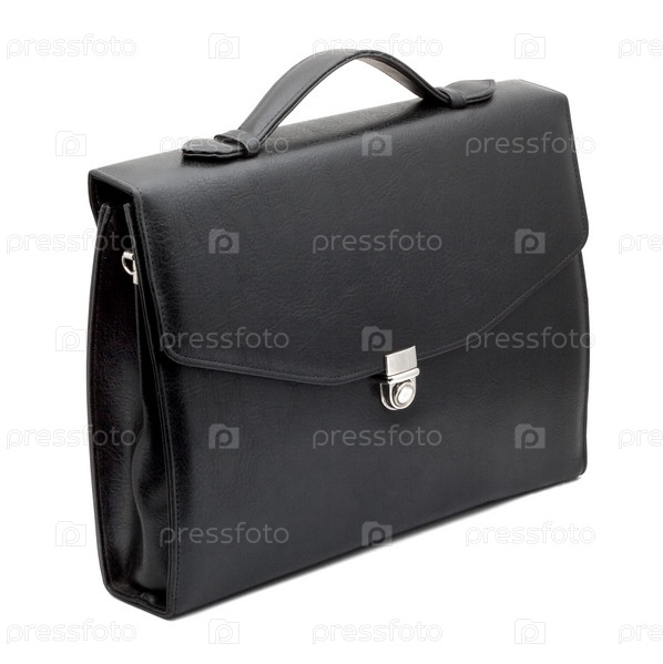 Закрытый черный портфель, изолированный на белом фоне