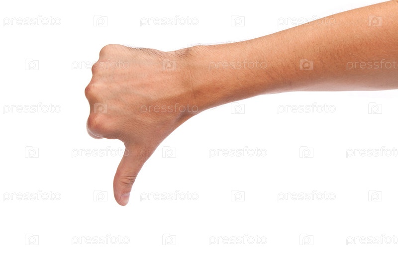 Большой палец вниз на белом фоне