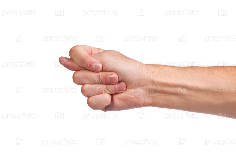 Рука показывает фигу на белом фоне