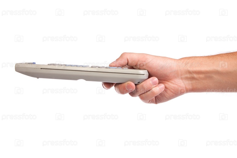 Пульт дистанционного управления в руке, изолированный на белом фоне