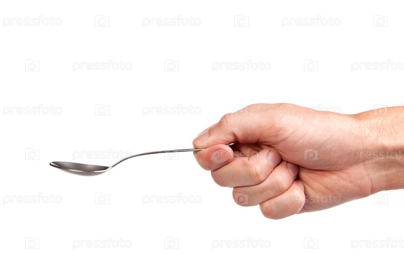 Рука держит ложку, изолированная на белом фоне