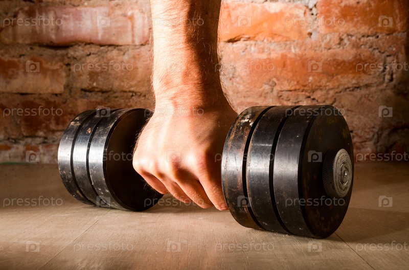 Мужская рука держит металлическую штангу