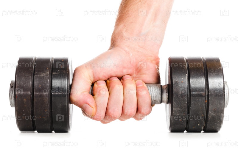 Мужская рука держит металлическую штангу
