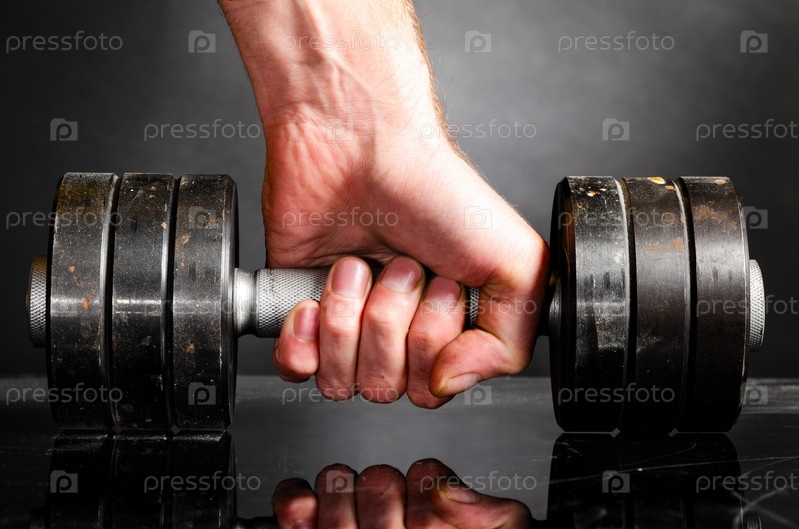 Мужская рука держит металлическую штангу