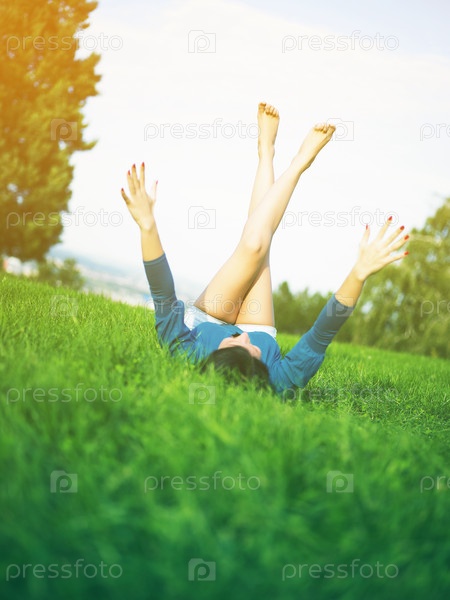 Женщина радуется и отдыхает в парке