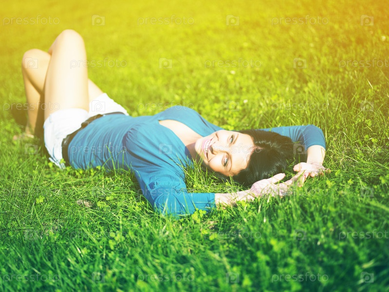 Молодая женщина отдыхает в парке