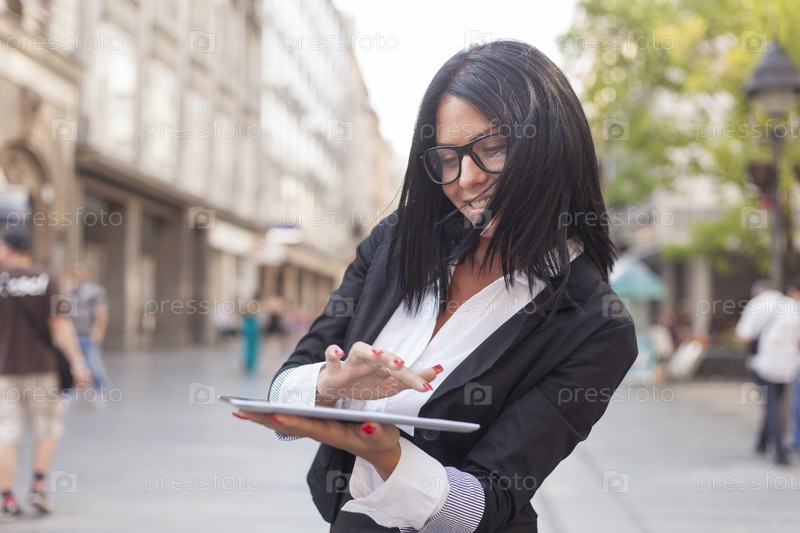 Улыбающаяся деловая женщина с планшетным компьютером