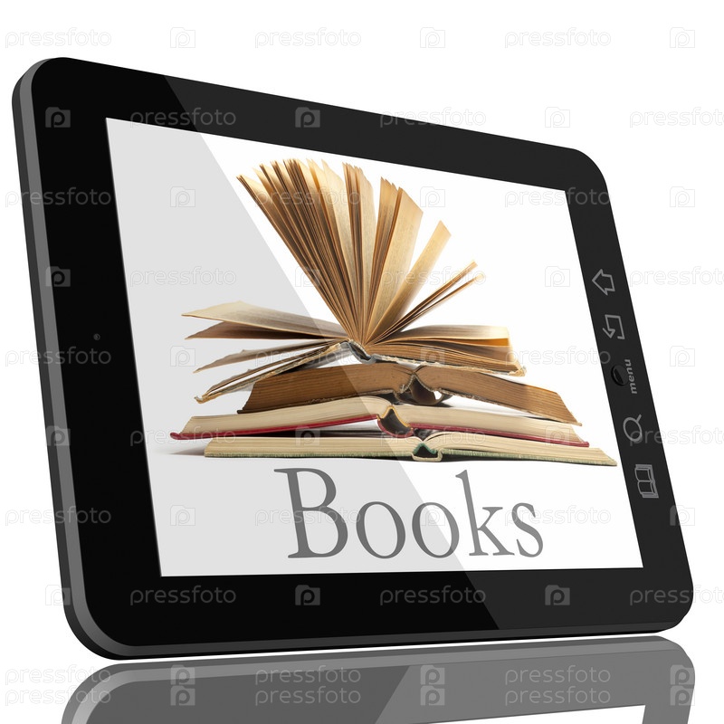 Планшетный компьютер и книга - концепция цифровой библиотеки