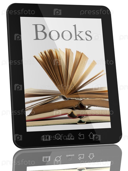 Планшетный компьютер и книга - концепция цифровой библиотеки