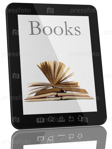 Планшетный компьютер и книга - концепция цифровой библиотеки