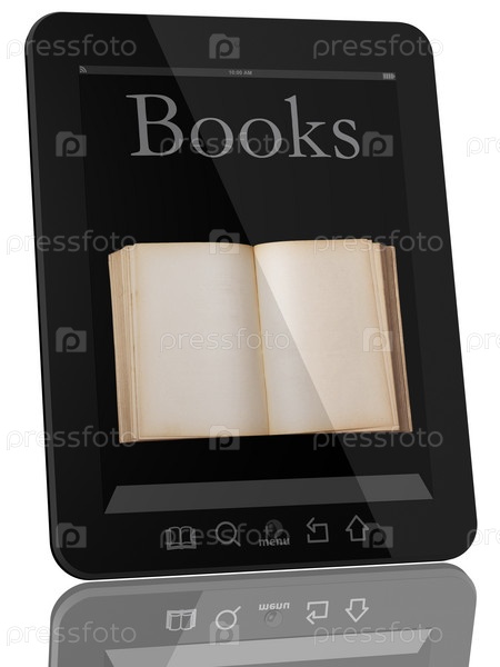 Планшетный компьютер и книга - концепция цифровой библиотеки