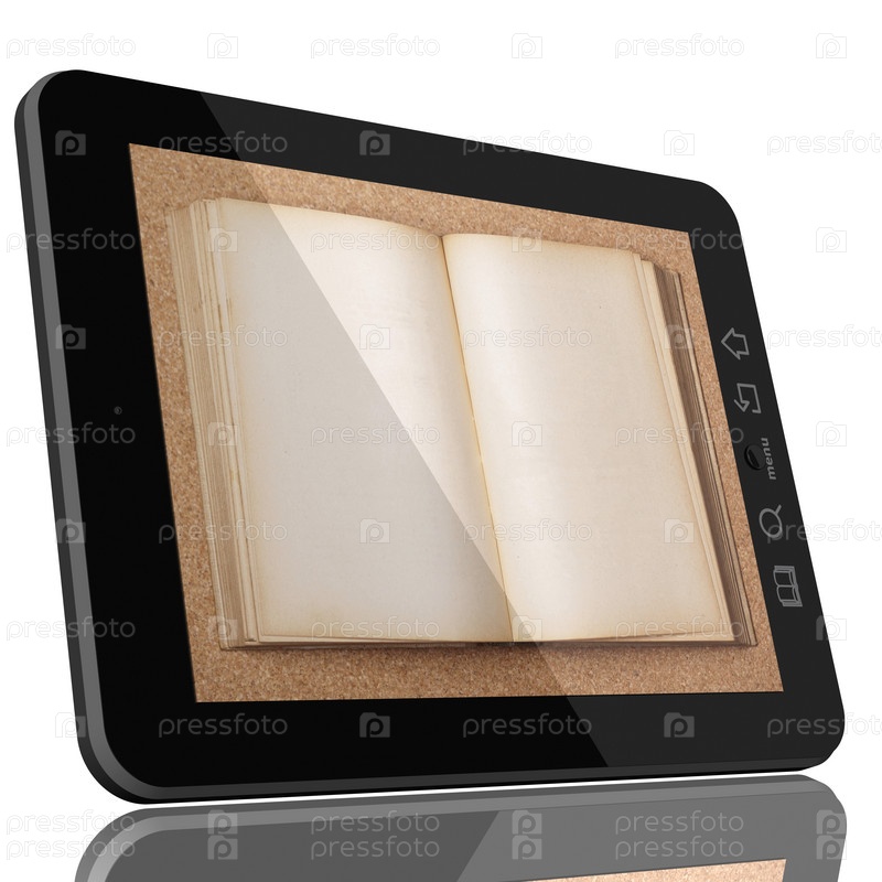 Планшетный компьютер и книга - концепция цифровой библиотеки