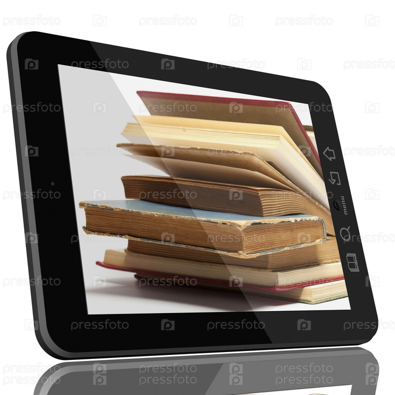 Планшетный компьютер и книга - концепция цифровой библиотеки