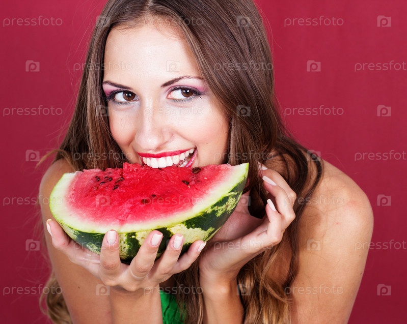 Красивая женщина с арбузом