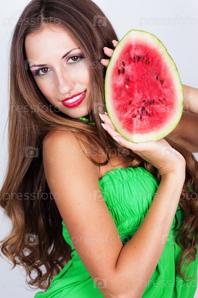 Красивая женщина с арбузом