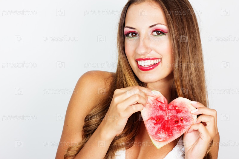Красивая женщина с арбузом в форме сердца