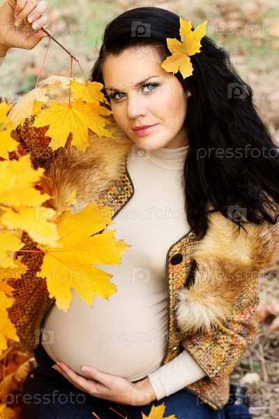 Красивая беременная женщина в осеннем парке