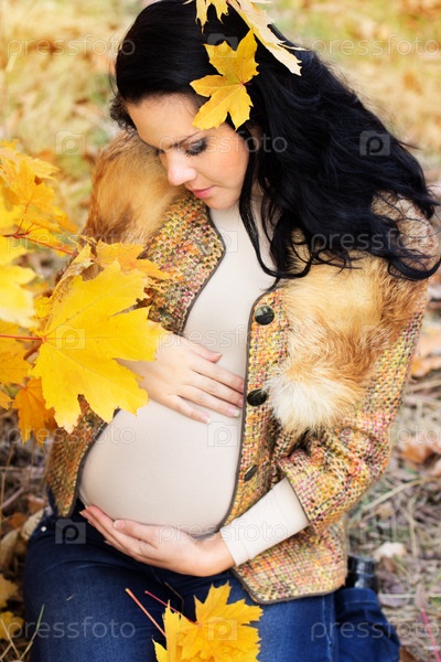 Красивая беременная женщина в осеннем парке