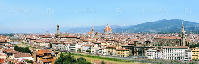 Панорама Флоренции с собором Санта Мария дель Фьоре, Палаццо Веккьо, Понте Веккьо, галереей Уффици и собором Санта Кроче