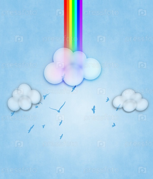 Абстракция с радугой и облаками