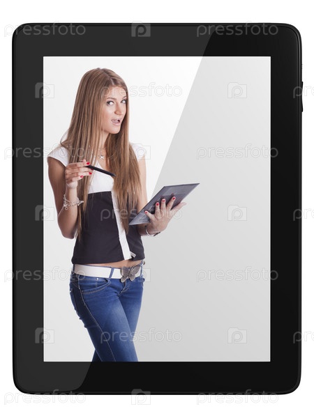 Красивая женщина с планшетным компьютером