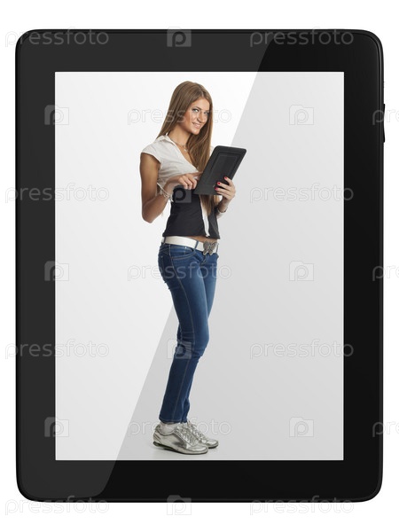 Красивая женщина с планшетным компьютером