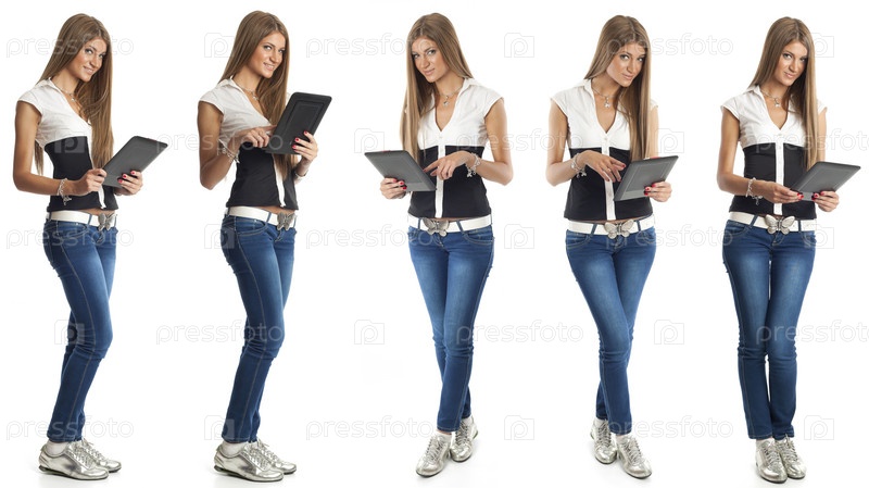 Красивая женщина Сспланшетным компьютером
