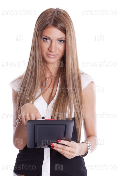 Красивая женщина с планшетным компьютером