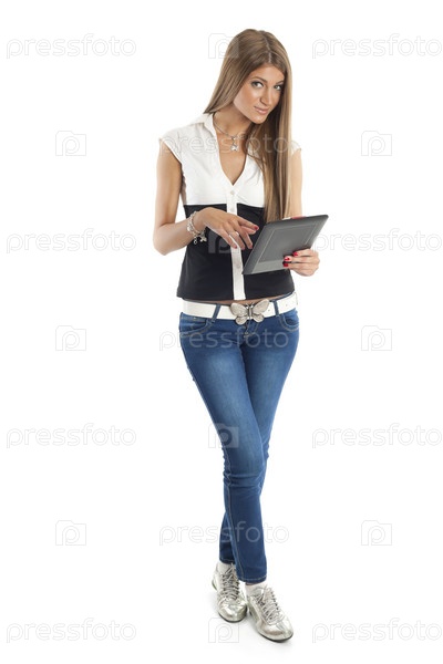 Красивая девушка с планшетным компьютером