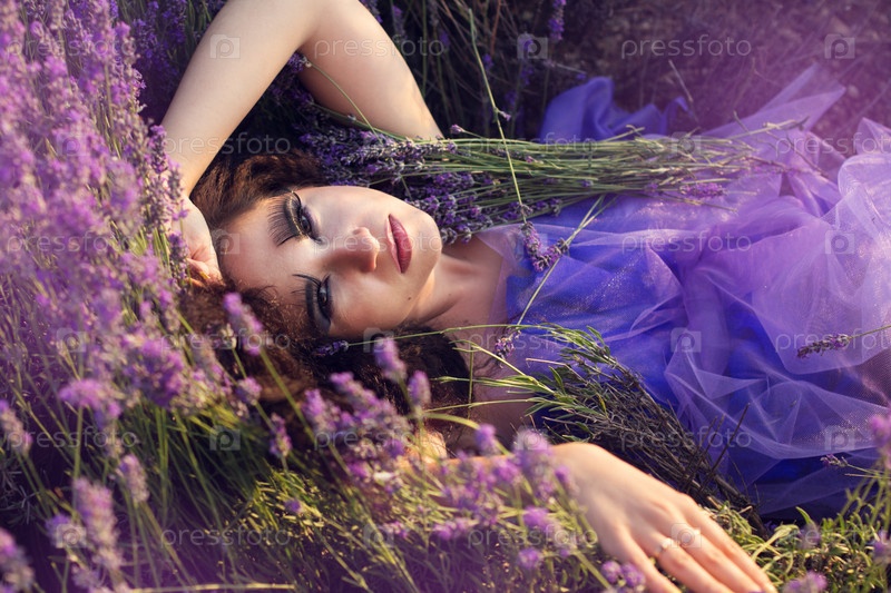 Красивая девушка на поле лаванды