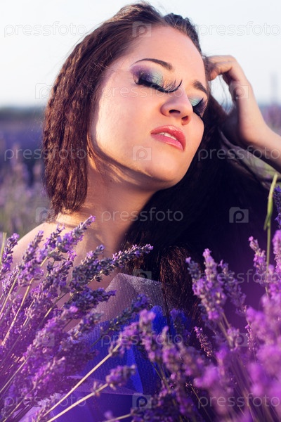 Красивая девушка на поле лаванды