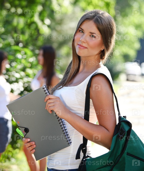 Счастливая студентка на свежем воздухе в солнечный день