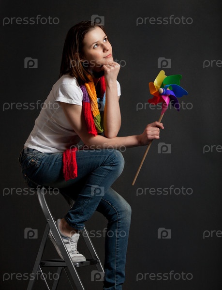 Счастливая брюнетка с вертушкой