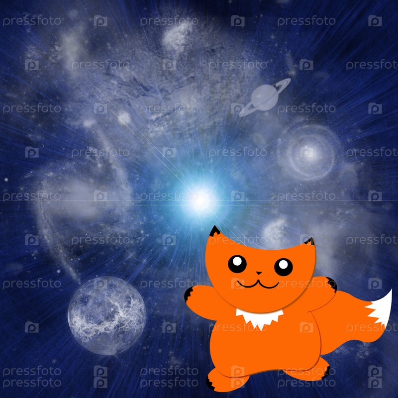 Абстрактный векторный фон, галактика с мультипликационным котом Пига