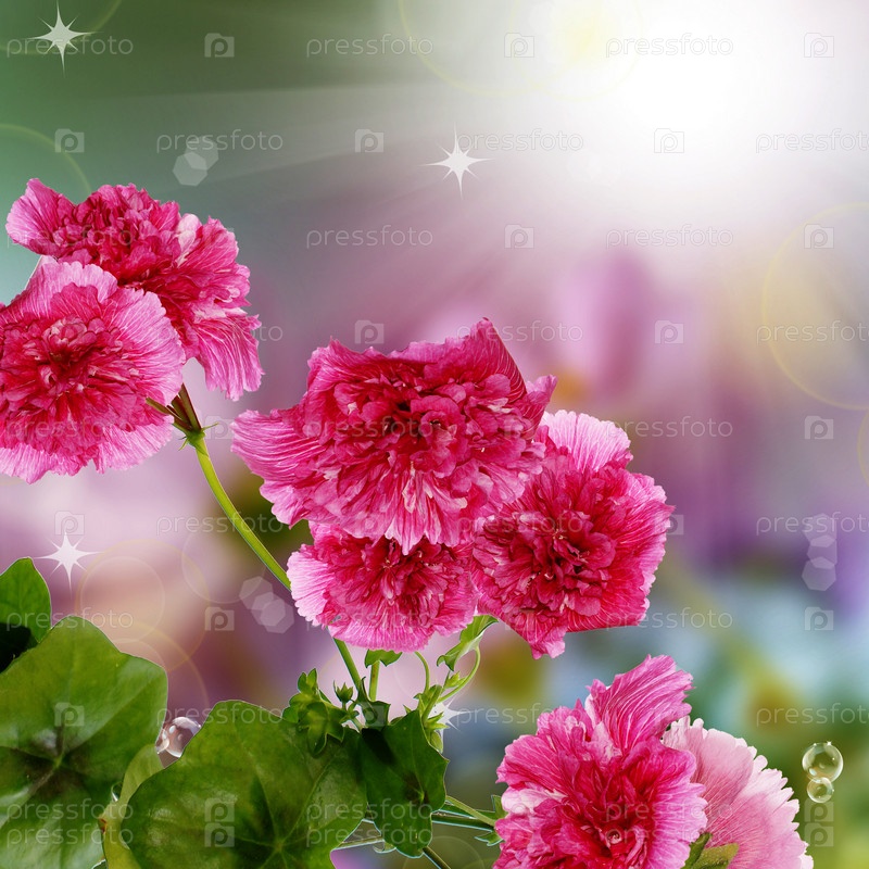 Декоративные садовые цветы на абстрактном фоне