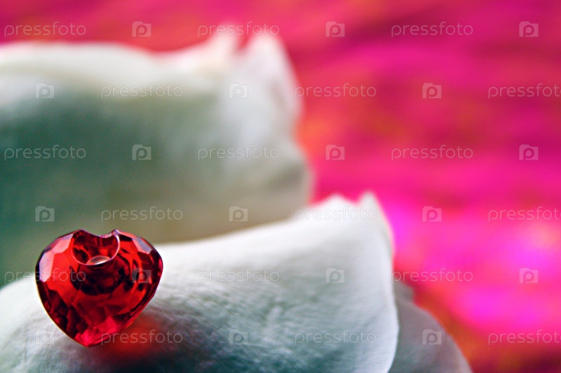 Красное сердце на белой розе