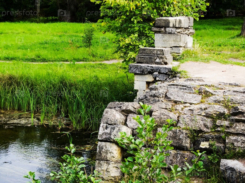 Руины на берегу озера в парке