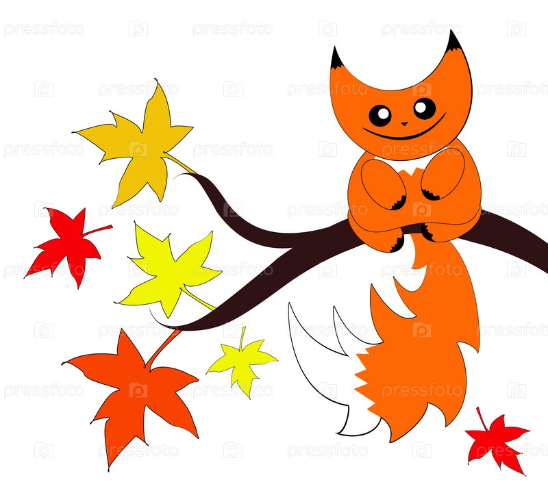 Абстрактное изображение осени. Котенок по имени Пига сидит на дереве