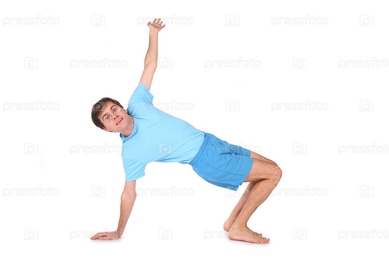 Счастливый мужчина, занимающийся йогой
