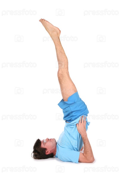 Мужчина, занимающийся йогой, ноги подняты вверх