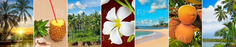 Тропические пляжи, пальмы и фрукты
