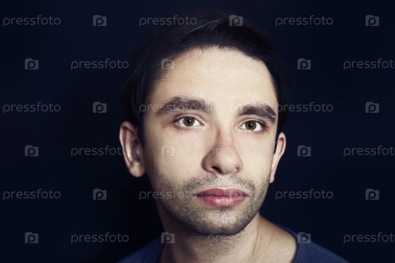 Молодой симпатичный мужчина в голубой футболке на черном фоне