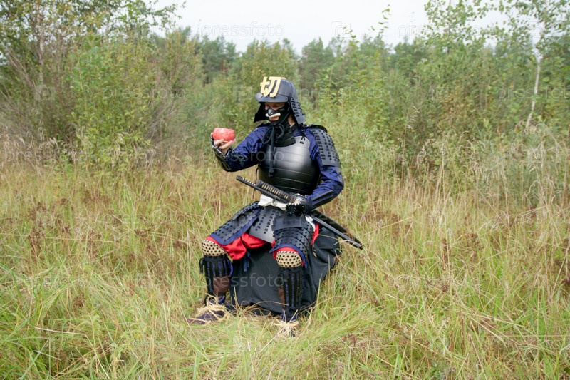 Человек, одетый в одежду японского воина