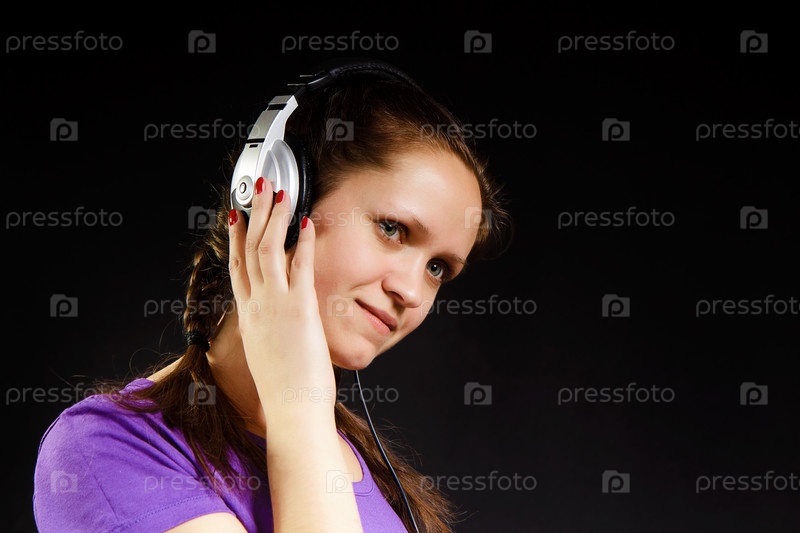 Улыбающаяся девушка в наушниках