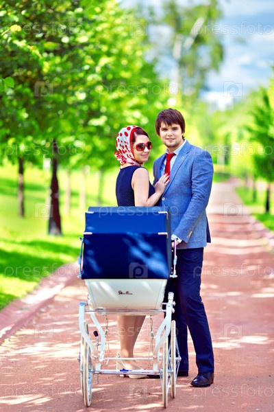 Красивая молодая семья с ребенком