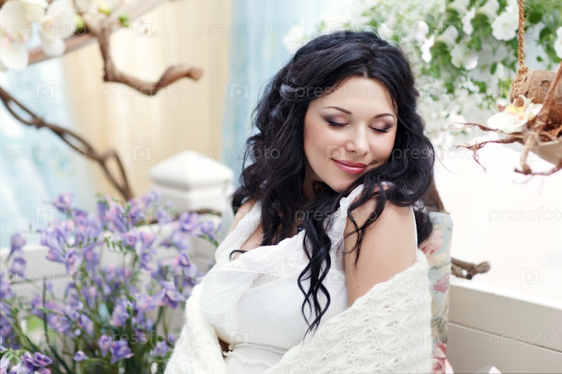 Красивая брюнетка с закрытыми глазами
