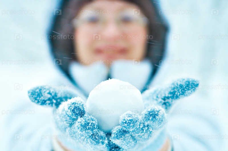Женщина предлагает снежный ком