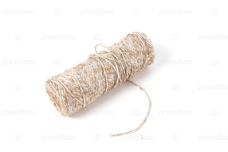 Рулон крученой веревки на белом фоне
