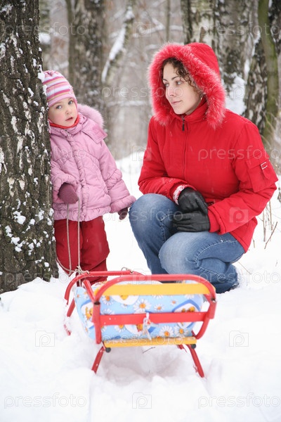 Мама с ребенком в парке зимой