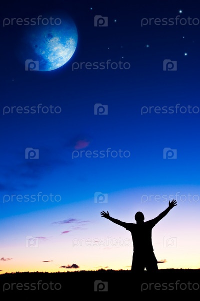 Человек раскинул руки под луной